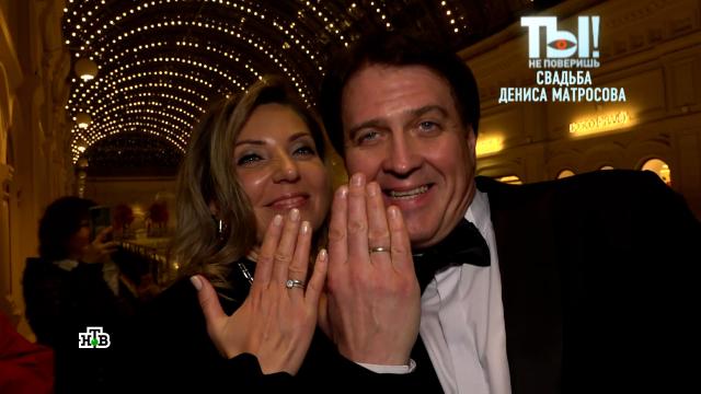 Денис Матросов не сводит глаз с красавицы жены Оксаны. Это третий по счету официальный брак актера, но для него всё как в первый раз. По обоюдному согласию молодожены не стали закатывать пышных торжеств и отметили свадьбу