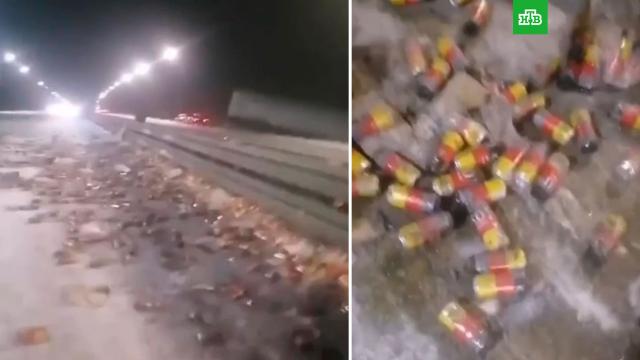 Авария произошла рядом с селом Кандры. Грузовик, перевозивший пиво, врезался в отбойник и вылетел с дороги на трассе М5. В результате банки с алкоголем рассыпались прямо на проезжую часть.