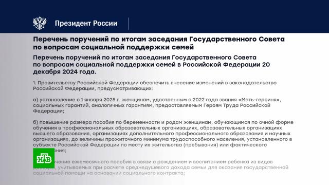 Путин поручил правительству повысить размер пособия по беременности и родам для студенток очной формы обучения — до величины прожиточного минимума, установленного по месту их жительства или фактического проживания. Решения должны быть приняты до 15 апреля.