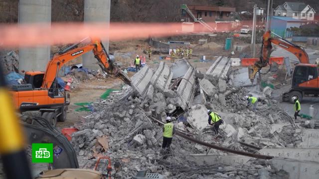 Автомобильный мост обрушился на участке скоростной автомагистрали Сеул Седжон.