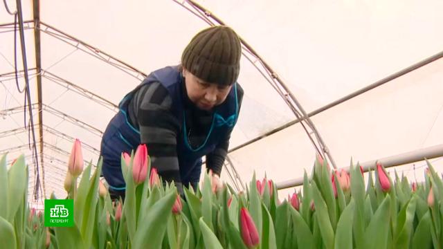 В одном из крупнейших на северо-западе России тепличном комплексе в городе Тельмана пробиваются ростки импортозамещения. Сейчас там вовсю срезают цветы к 8 Марта.