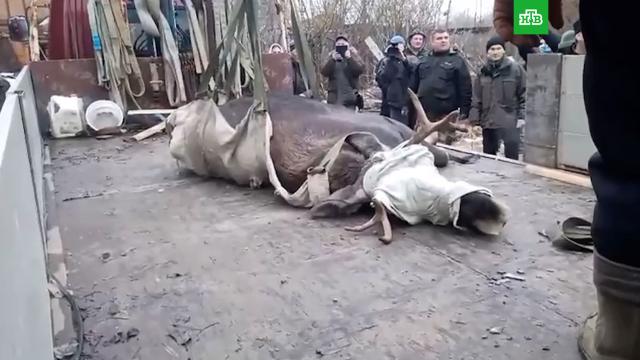 В подмосковном Дмитрове поймали дикого лося по кличке Лёха, который поселился на территории бывшего завода.