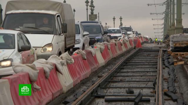 Троицкий мост полностью закрывают для автомобилистов на два месяца, сегодня сообщили в подрядной организации в ходе осмотра строительной площадки. В данный момент до двух полос ограничено движение транспорта в сторону Суворовской площади, а в обратном направлении машины двигаются по одной.