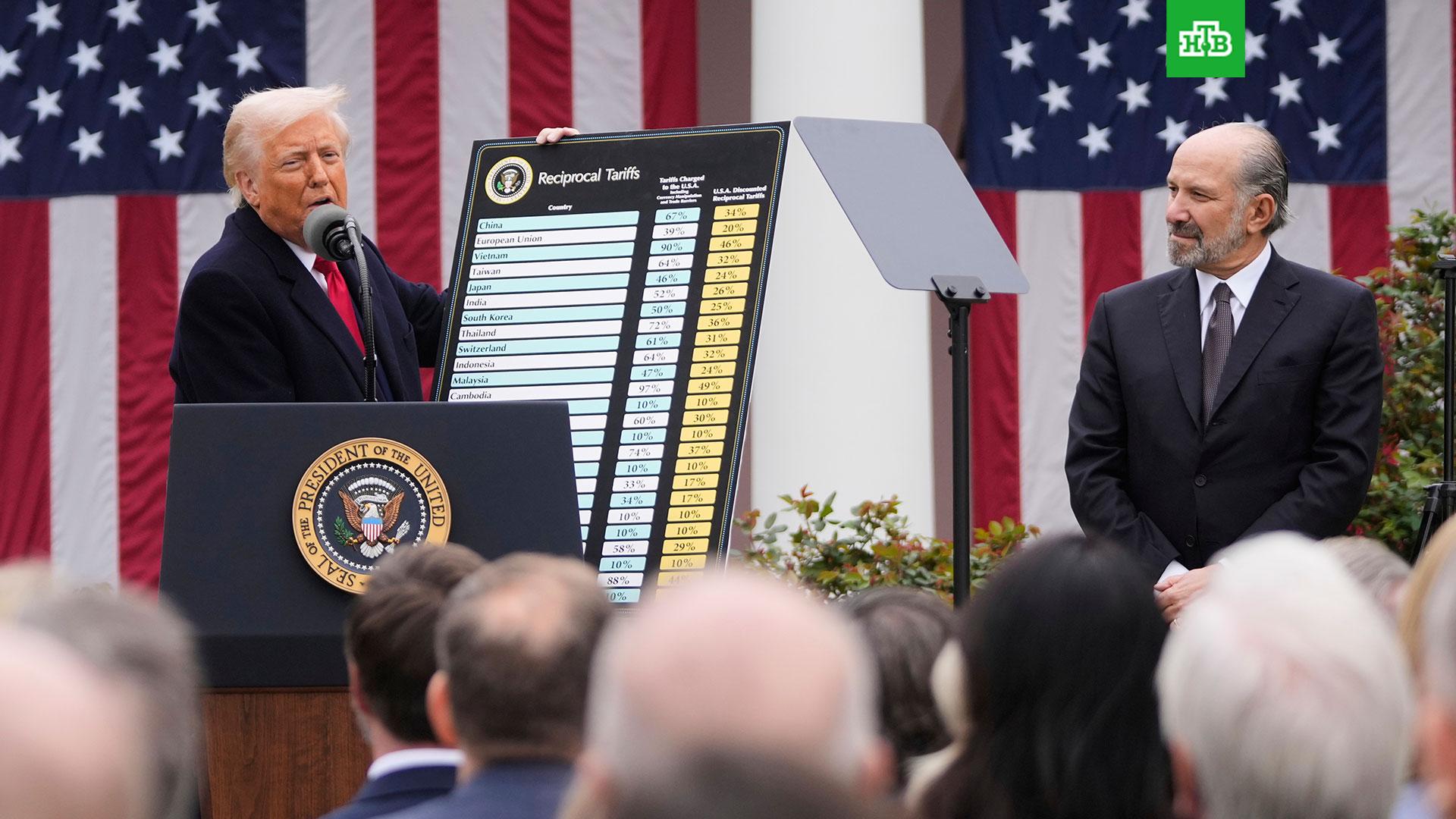 В частности, США вводят таможенные пошлины в отношении импорта из Китая в размере 34%, а также для Евросоюза — 20%. В обнародованном Трампом списке самый высокий тариф в размере 50% введен для Лесото, а также