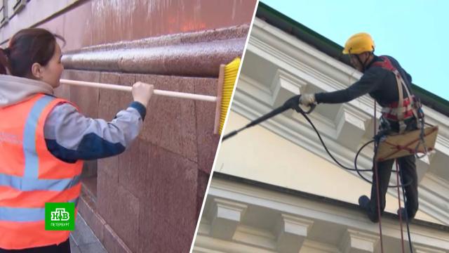 С начала апреля Петербург стал чище на 2442 фасада и 445 улиц. Коммунальные службы весь месяц не покладая лопат, метел и шлангов с водой борются с последствиями зимы.