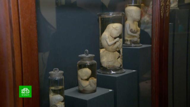 На почетном месте — емкости с препаратами, демонстрирующими нормальное развитие человеческого плода. Задолго до эпохи УЗИ, КТ и МРТ широкие массы завораживала приоткрывшаяся тайна рождения человека. Да и теперь экспонат приводит в детский восторг умудренных опытом взрослых.