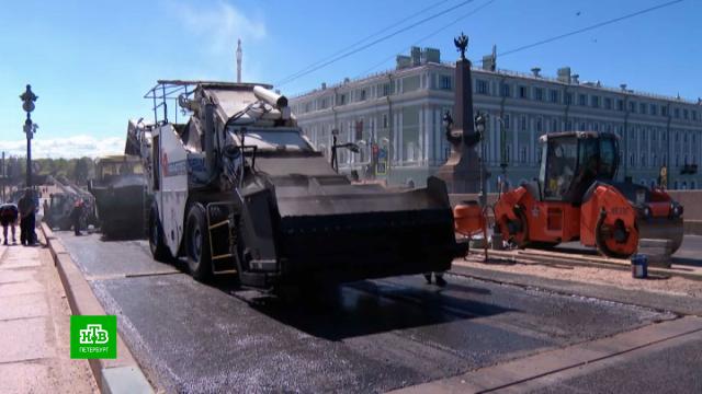 Сегодня рабочие начали укладку самого верхнего слоя асфальта. Троицкий мост закрыли в конце февраля. За три минувших месяца специалисты выполнили полугодовую норму: демонтировали более восьми тысяч квадратных метров старого покрытия, заменили в общей сложности почти 165 метров деформационных швов и уложили более двух километров новых трамвайных рельсов.