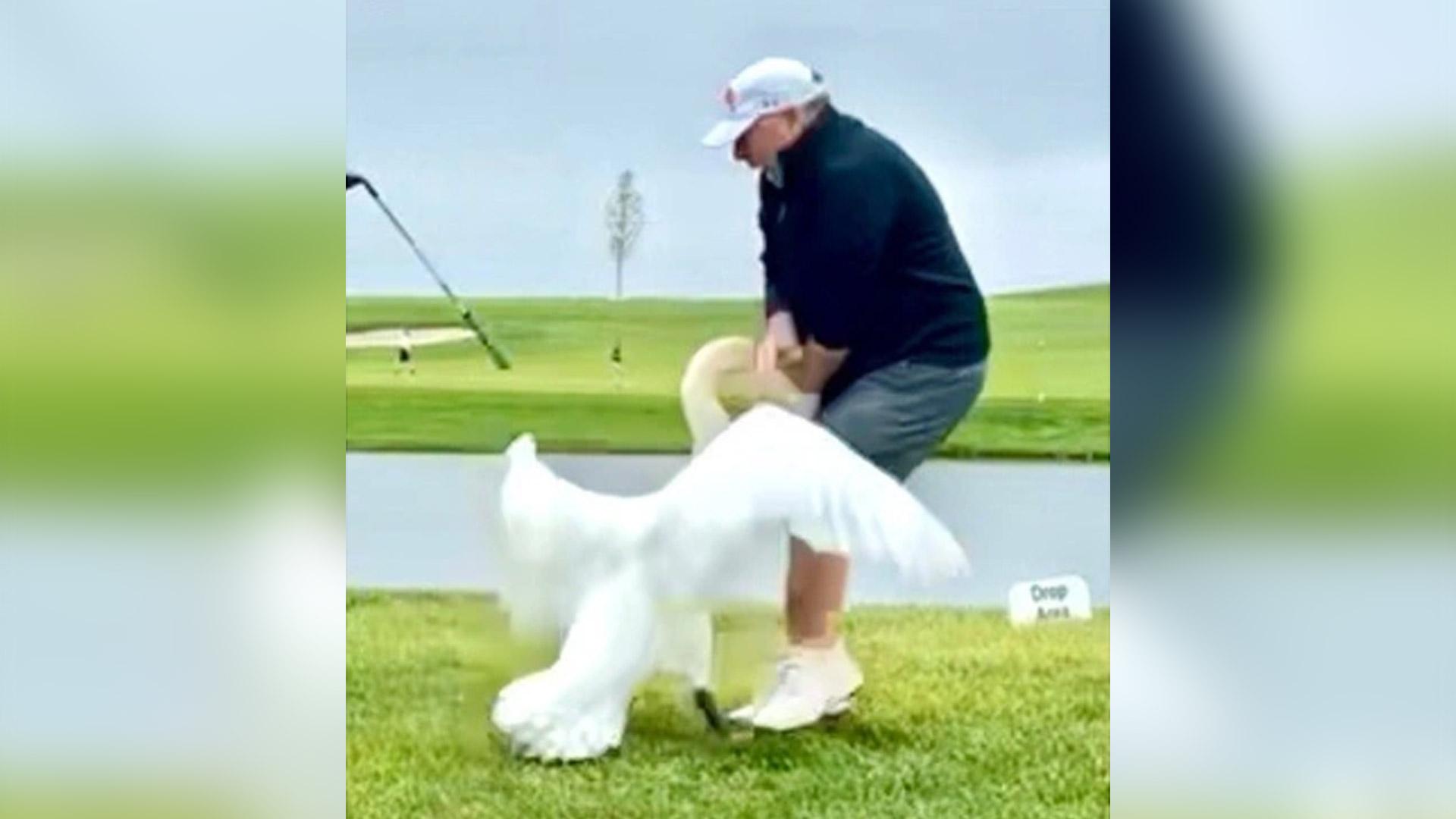 Президент США Дональд Трамп показал фотографию своего спецпосланника Стива Уиткоффа, которого лебедь укусил во время игры в гольф.
