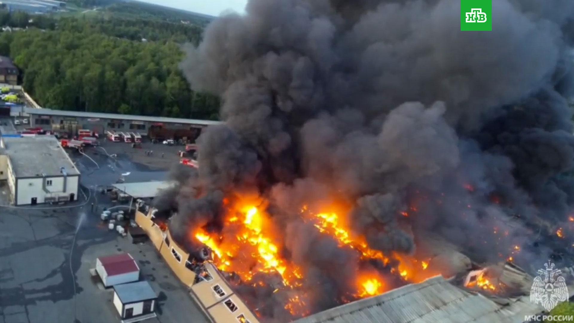 Напомним, крупный пожар на складе на западе подмосковного города Пушкино вспыхнул в субботу вечером. Огонь очень быстро распространился на площади21 тысяча квадратных метров. Как сообщили в МЧС, на складе хранились легковоспламеняющиеся жидкости в бочках, а также газовые баллоны и поддоны. На горящем складе обрушилась кровля.