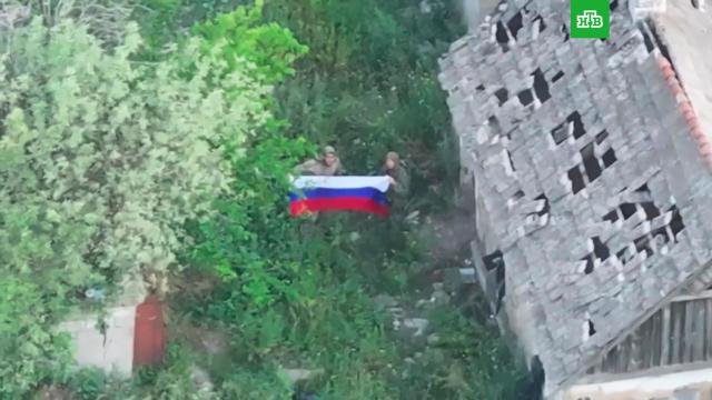 Закрепившись в селе, штурмовики развернули российские флаги и провели зачистку всех зданий.