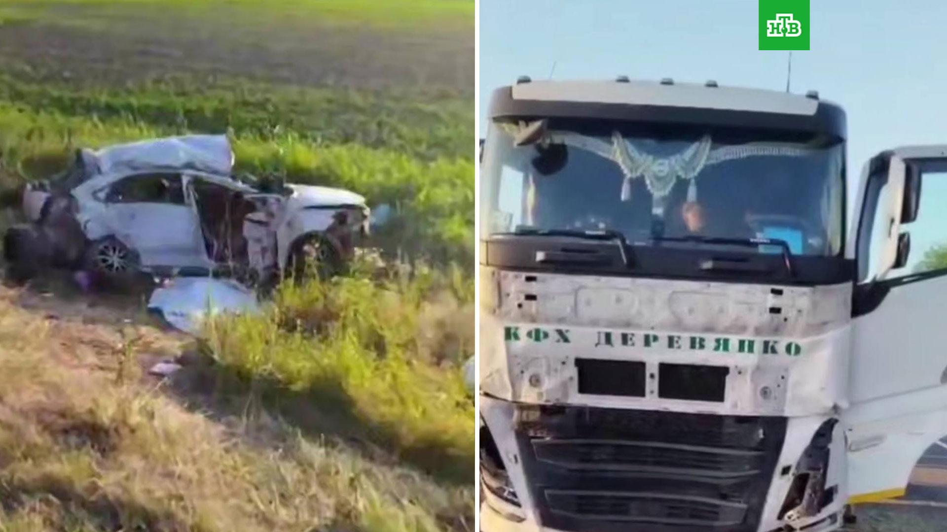 Четыре человека погибли при столкновении легковушки с двумя грузовиками микроавтобусом на трассе в Краснодарском крае.