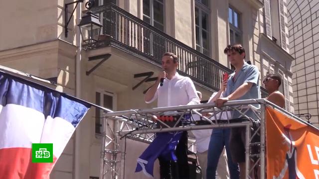 В конце демонстрации участники митинга разорвали флаг НАТО и призвали к отставке Макрона, который по итогам саммита снова назвал Россию самой большой угрозой.