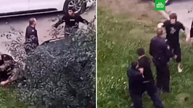 В городе Нефтеюганске два пьяных молодых человека подрались с сотрудниками полиции. Очевидцы сняли потасовку на видео.