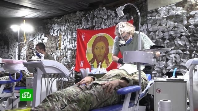 В прифронтовых районах встретили группу стоматологов из Москвы, Казани, Белгорода и Воронежа. Профессионалы обустроили кабинет уровня столичных клиник. Спрос на такую помощь у бойцов с передовой высокий.