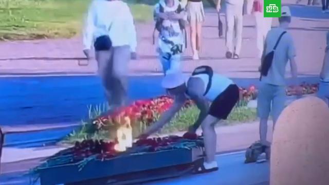 В субботу в полицию поступило сообщение о двух нарушителях, которые жарят еду у мемориала Вечный огонь на Марсовом поле. Записи с камер наблюдения подтвердили информацию.