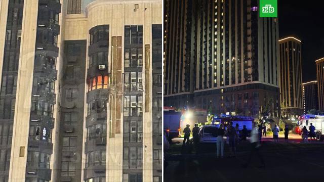 По словам местных жителей, за земле рядом с домом — обломки дрона и стекла, повреждены как минимум семь окон. Жильцов попросили покинуть квартиры и перекрыть газ.