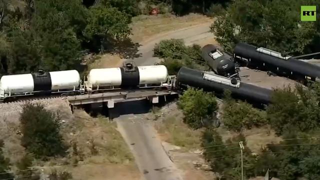 Поезд, перевозивший потенциально опасные вещества, сошел с рельсов в округе Пало-Пинто штата Техас в США.