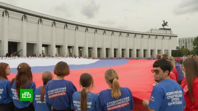 Сегодня в России отмечают День Государственного флага. Это символ исторической преемственности и единства нашего народа, гордости за свою страну и ее достижения. По традиции в этот день во всех регионах проходят патриотические акции. В столице на Поклонной горе москвичи и гости города могли присоединиться к съемкам клипа на песню «Флаг моего государства», которую исполняет Денис Майданов. Во время флешмоба больше 300 детей выстроились в цветах российского триколора. Там же на Поклонной горе представители волонтерских и молодежных организаций выпустили в небо 400 воздушных шаров в цветах российского флага и развернули масштабный триколор. Его площадь — около тысячи квадратных метров, он занесен в «Книгу рекордов и достижений» страны.