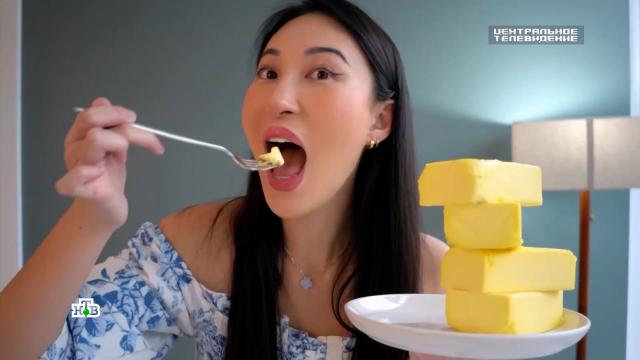 Российский интернет захлестнула волна нового и совершенно безумного тренда. Девушки, смакуя, откусывают огромные куски сливочного масла, как будто это мороженое или шоколад.