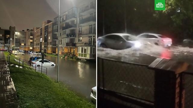 Жители Калининграда делятся кадрами с последствиями непогоды в соцсетях. Видны залитые водой улицы и дворы. Грозовой фронт бушует в регионе более 6 часов.