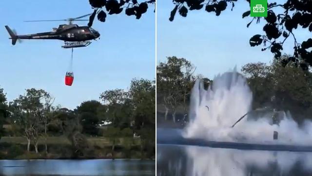 На северо-западе Франции противопожарный вертолет разбился при заборе воды в пруду. Очевидцы сняли на видео момент крушения судна.