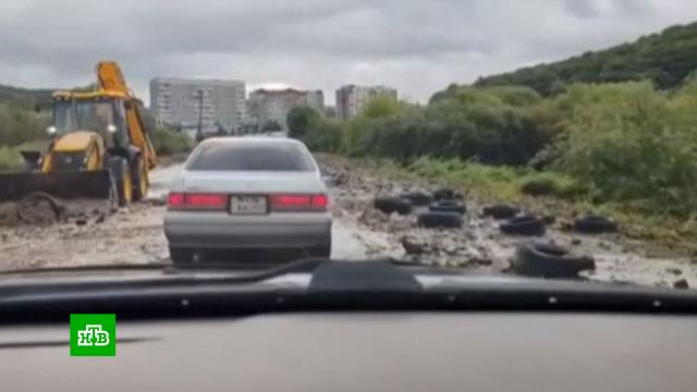 Мощный циклон накрыл Дальний Восток. Сутки в регионе не прекращаются ливни. В Находке выпала практически месячная норма августа, который и так считается самым дождливым месяцем в Приморье. Потоки воды смыли асфальт с дорог и вызвали сход селей. Жителей предупредили о второй волне подтоплений