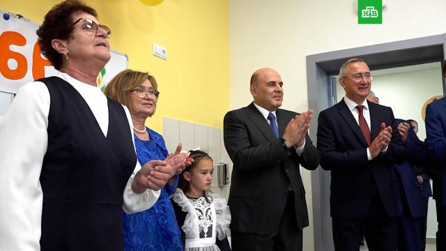 Мишустин, в сопровождении губернатора Владислава Шапшы и министра просвещения Сергея Кравцова, зашел на урок к ученикам третьего класса.