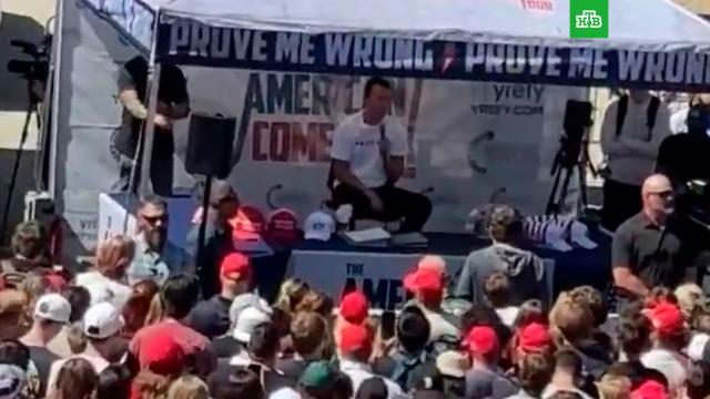 Кирк сидел на стуле, как вдруг раздался выстрел. Из шеи политика фонтаном хлынула кровь, он упал со стула. Его унесла охрана. Дональд Трамп призвал молиться за своего сторонника.