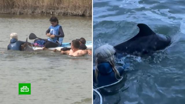 Изначально специалисты планировали дождаться прилива, чтобы дельфина поманить и вывести к морю, но после этого случая стало понятно:
