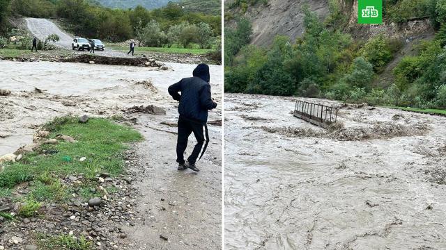 В Дагестане пытаются справится с ударом стихии. Регион затапливают небывалые ливни. СМИ сообщили об обрушении двух мостов.