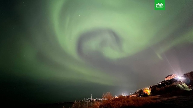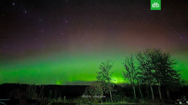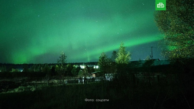 На снимках из Пермского края в небе видны зеленые и
