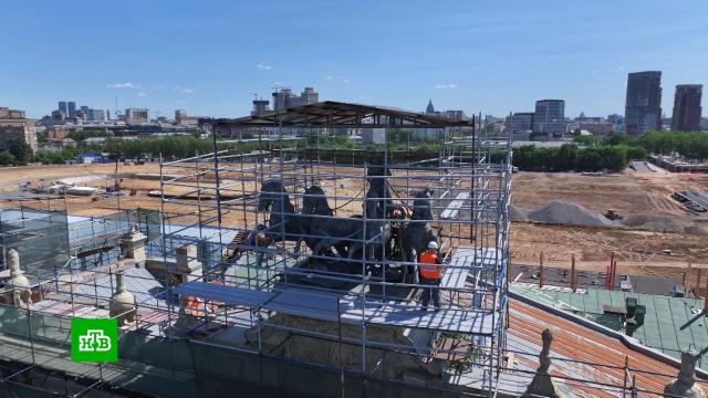 Сергей Собянин: «Смотрим реализацию одного из крупнейших городских проектов — восстановления исторического ипподрома Москвы, самого старейшего в нашей стране. Стройка идет полным ходом: реставрация исторического павильона, беговых дорожек, конноспортивных комплексов и так далее. Надеемся, что в следующем году все работы будут завершены и вся эта красота будет снова служить москвичам, любителям конного спорта. И, конечно, будут восстановлены замечательные памятники архитектуры».