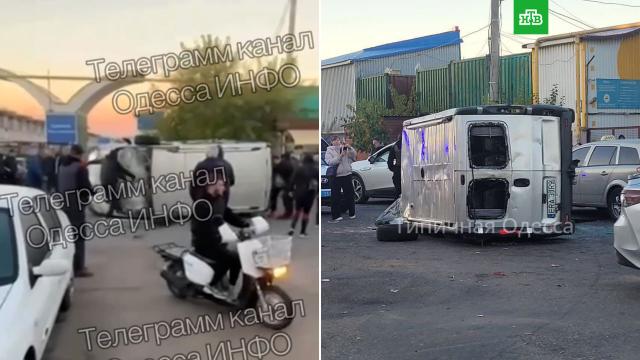 Украинские СМИ пишут, что военкомы приехали на рынок и пытались мобилизовать работающих там мужчин. В ответ на это работники набросились на них с кулаками, а потом разгромили и перевернули их автобус.
