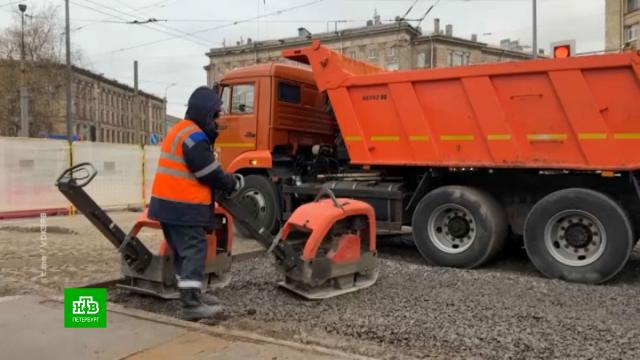 Сегодня на проспекте Энгельса начались работы по восстановлению асфальтобетонного покрытия. Вечером 8 ноября там произошла авария. Сторонней организацией была повреждена труба холодного водоснабжения диаметром 50 см и труба водоотведения диаметром 60 см.