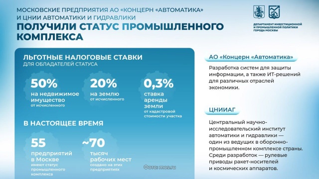 Статус промкомплекса в Москве присвоен уже 55 предприятиям.