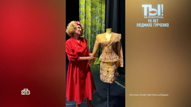 Эвелина Блёданс носит блузку и гобеленовый пиджак с плеча Гурченко. А в спектакле «Любовь и голуби», где актриса играет Раису Захаровну, на сцене всегда присутствует костюм из золотой парчи, который тоже принадлежал кинодиве.
