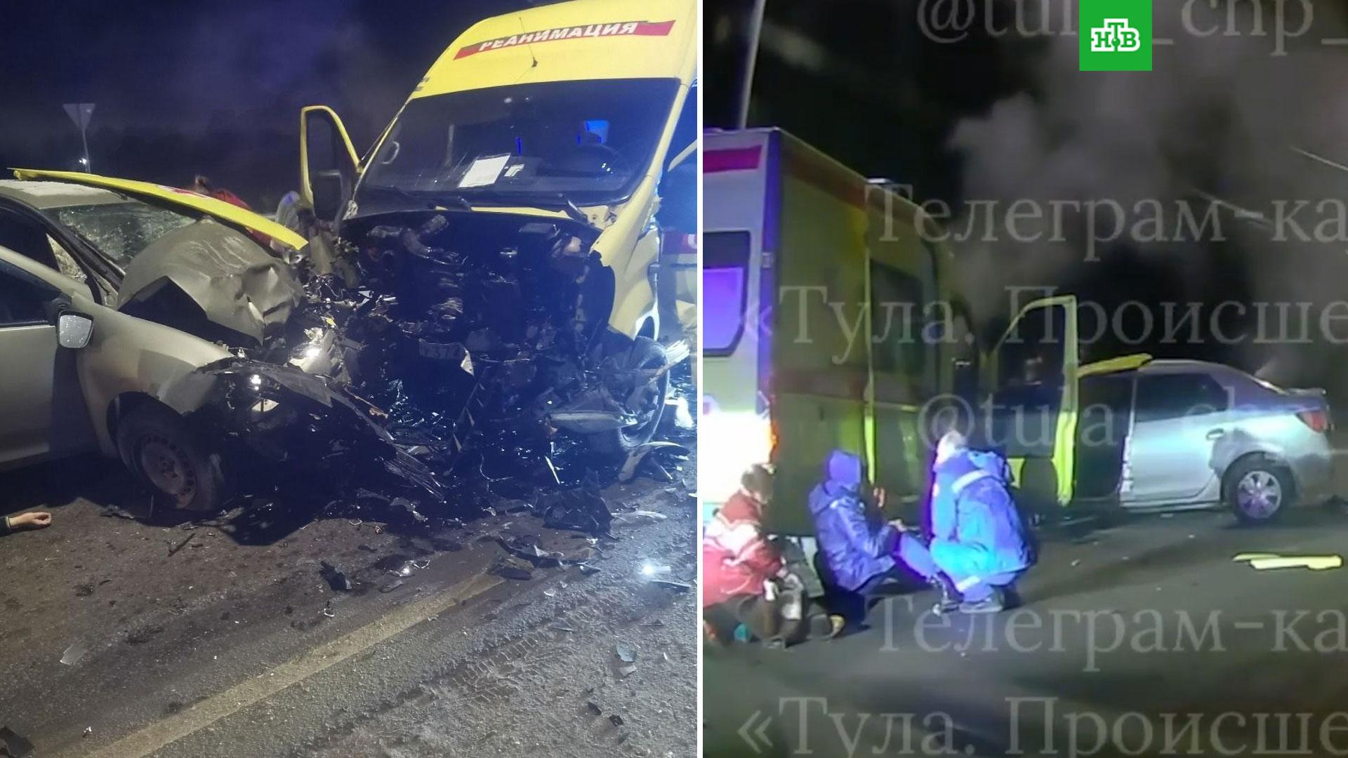 Один человек погиб и пятеро пострадали в лобовом столкновении автомобиля скорой помощи с легковушкой на Новомосковском шоссе в Туле. Об этом сообщил начальник
