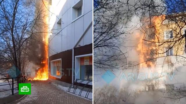 В Улан-Удэ тушат крупный пожар в торговом центре.
