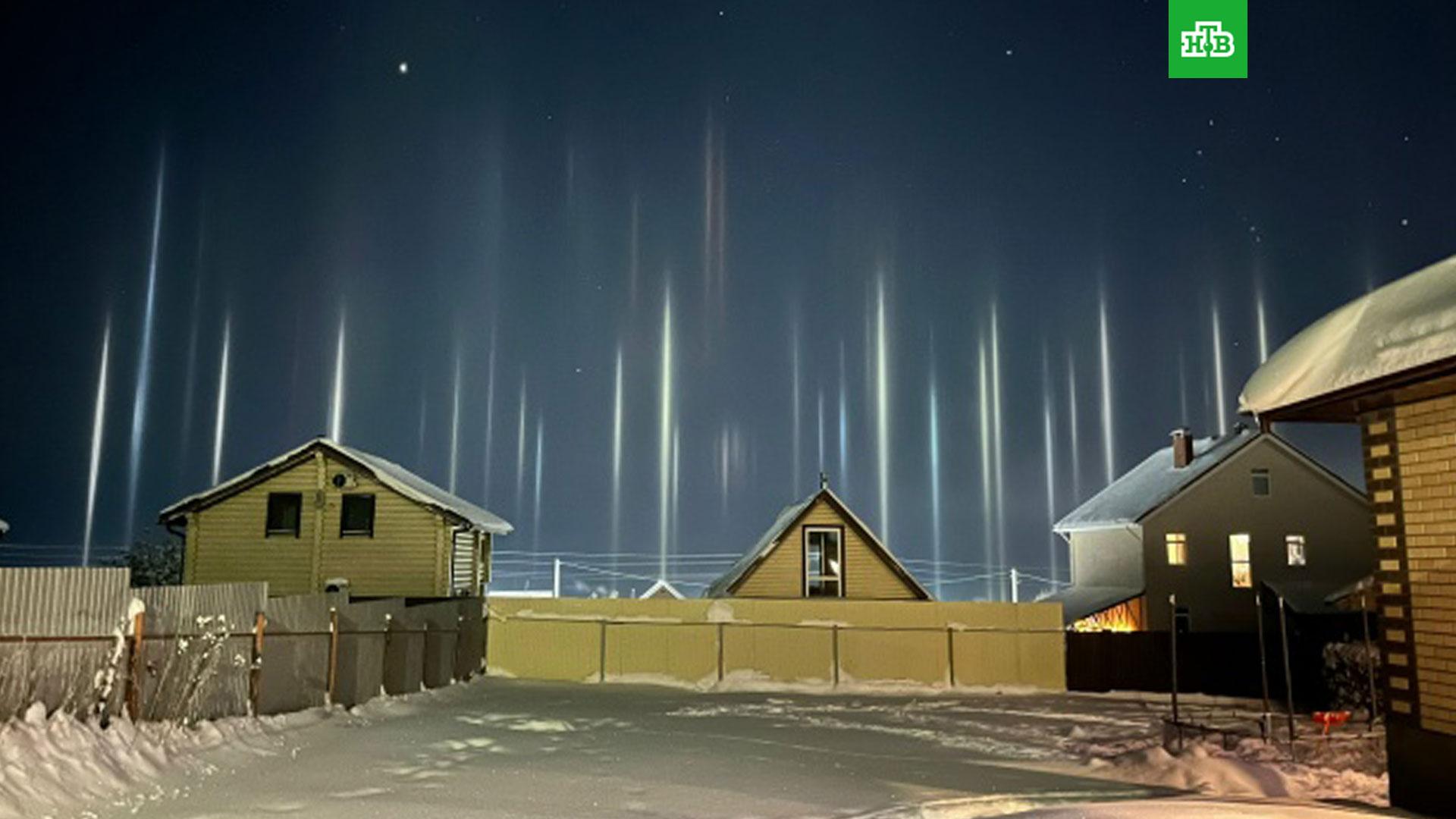 Необычное природное явление замечено в Пермском крае. Речь идет о световых столбах, которые можно увидеть в ясную погоду.