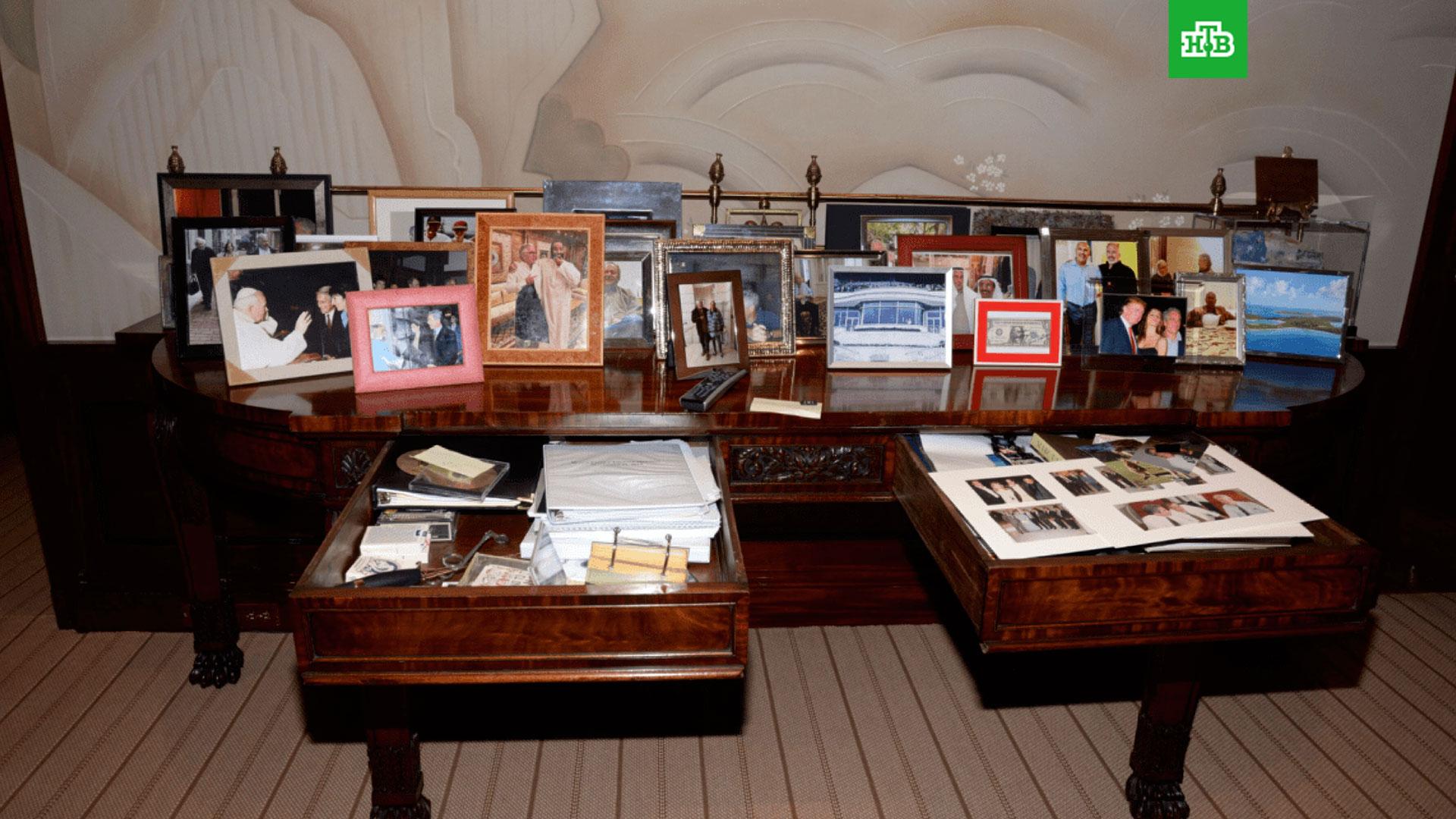 Из снимков, сделанных во время обыска, следует, что Джеффри Эпштейн в комнате видеонаблюдения своего таунхауса в