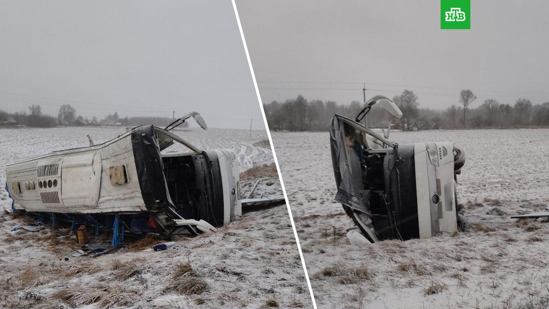 Автобус съехал в кювет и опрокинулся. В салоне, по данным ведомства, находились два водителя и 12 пассажиров. В результате ДТП погибла