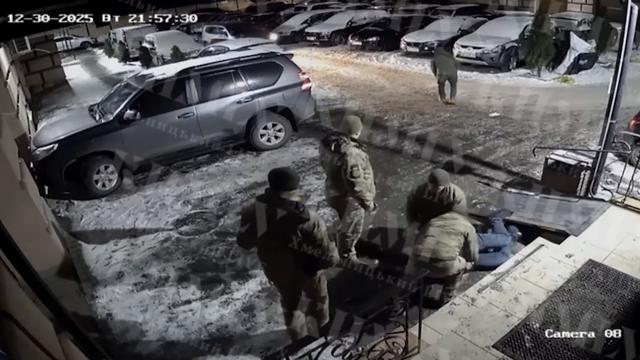 В соцсетях появились кадры с камеры видеонаблюдения. На них мужчина убегает от нескольких военкомов и пытается забежать в подъезд дома. Один из военкомов настигает его, потом подбегают остальные его коллеги. После этого они толпой начинают бить мужчину и в итоге валят его на землю, а потом запихивают в свой автобус.