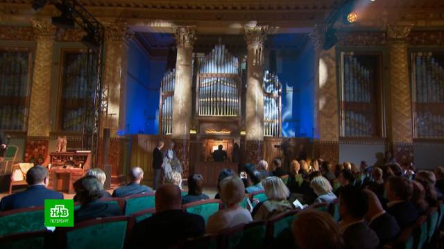 В Петербурге шедевр архитектора Кваренги на Английской набережной предстал в новом свете. Фасад бывшей англиканской церкви осветила видеоанимация. Яркое шоу приурочили к открытию после 10-летней реставрации самого здания и одного из старейших и самых больших органов города.