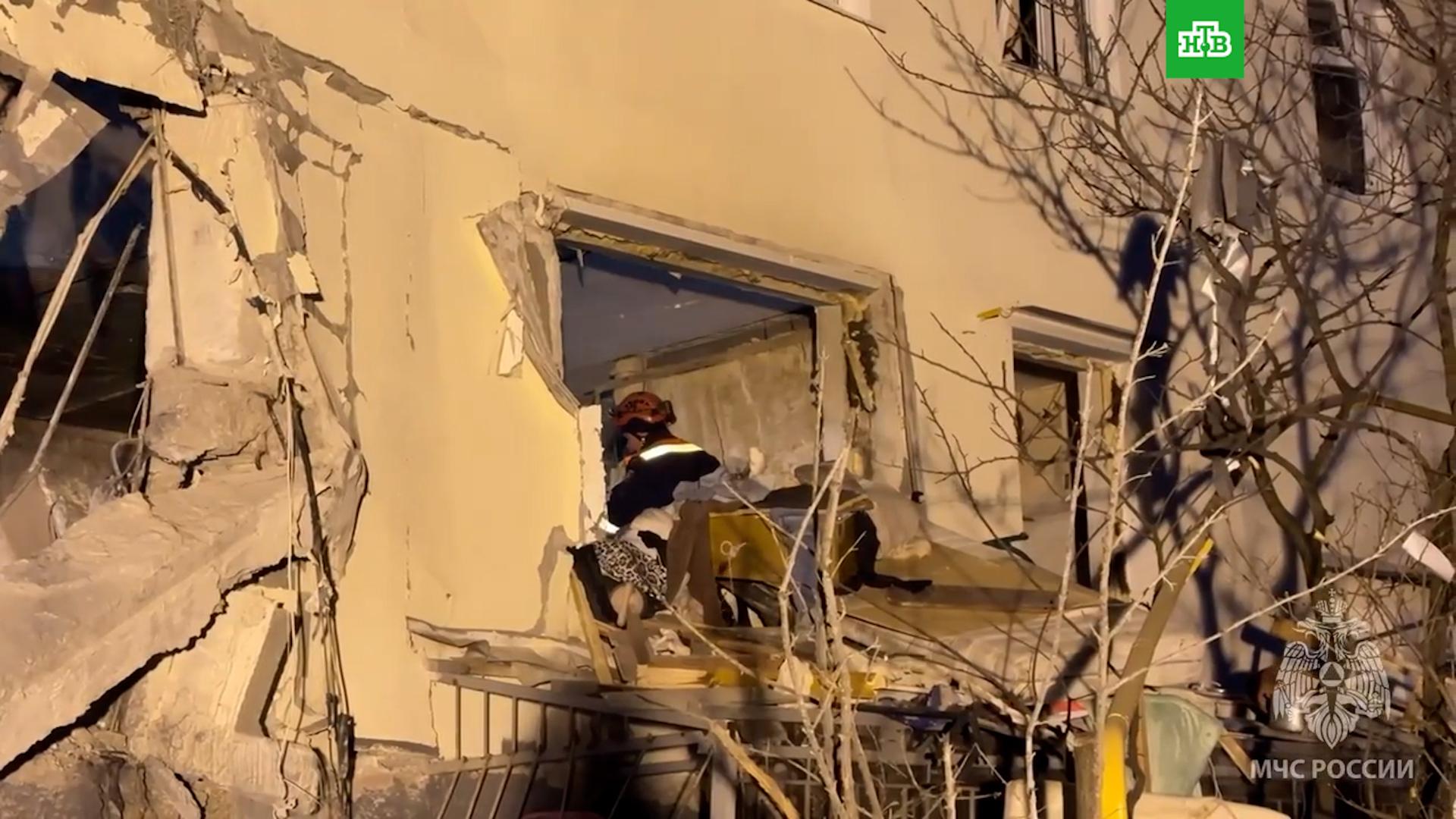 В МЧС сообщили, что открытое горение на месте происшествия ликвидировано. Спасатели продолжают проливку конструкций и разбор завалов. С жителями поврежденных домов работают психологи МЧС.