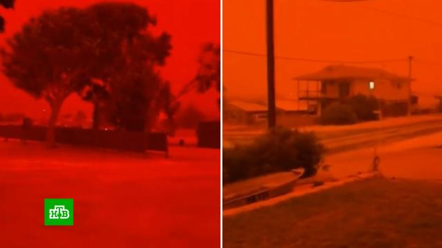 Красочные и одновременно пугающие кадры поступают из Австралии, где небо в одном из районов стало кроваво-красным .