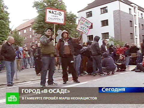 Ситуация была бы не столь опасна, если бы сегодня же в Гамбурге одновременно с неонацистами не выступали бы их заклятые враги — «ультралевые», которых тут в несколько раз больше, чем «ультраправых». И те и другие перемещаются по городу маленькими группами. Так что полиция едва успевает поспевать за всеми. Левые радикалы громят одну улицу за другой. И тщетно корреспонденты НТВ пытаются выяснить цель этих действий.