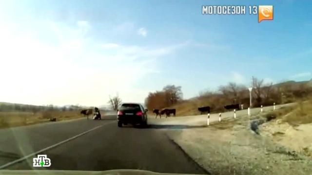 С наступлением тепла на автомобильных дорогах появились не только открывшие сезон мотоциклисты, но и коровы, почуявшие запах свежей травы. Байкерам и домашним животным не всегда удается разойтись на трассе без потерь.