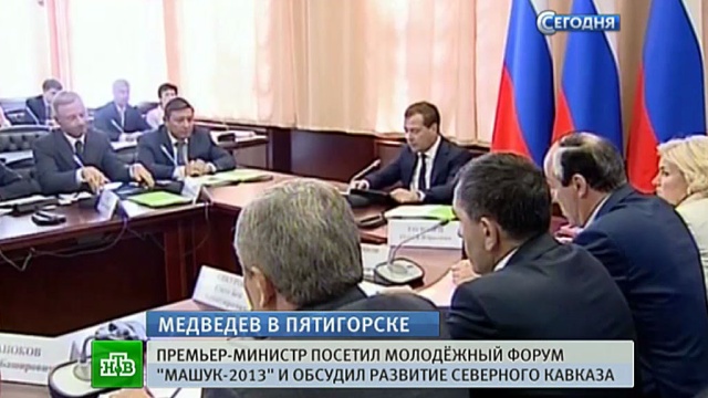 Медведев не только ответил на вопросы, но и посетил лагерь участников форума. Посмотрел, как они живут, и взял урок граффити. И сегодня же в Пятигорске Медведев провел совещание Правительственной комиссии по развитию