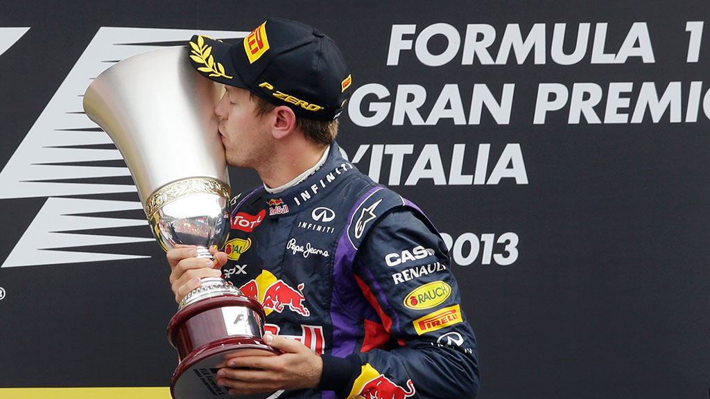 Немец Себастьян Феттель празднует победу на итальянском этапе чемпионата мира по автогонкам в классе машин