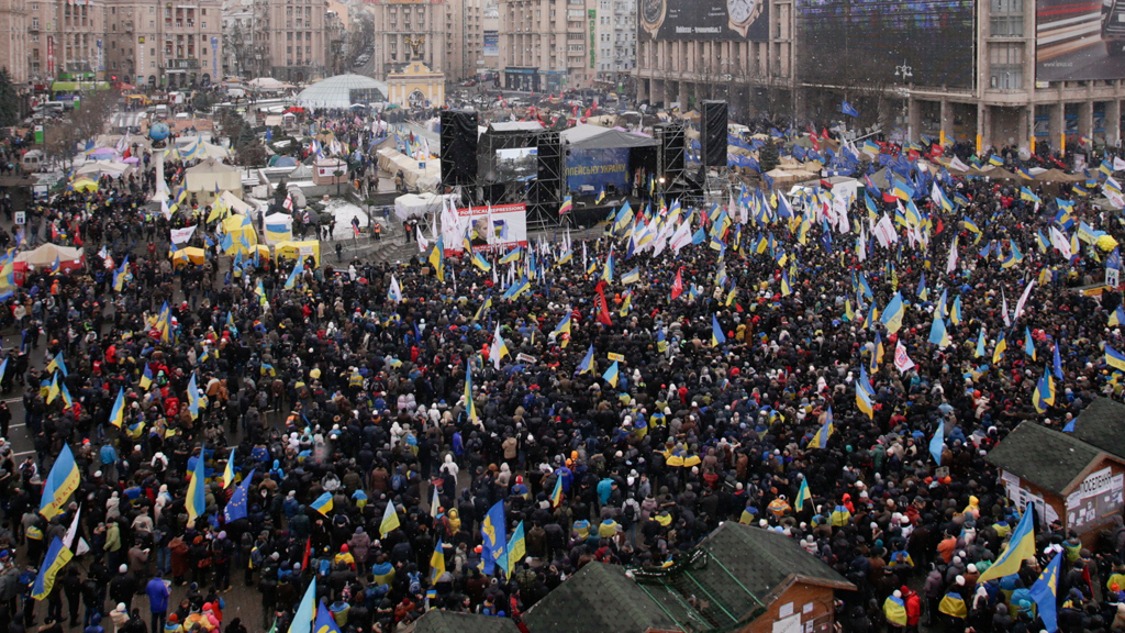 Активисты выходят на масштабную акцию в центр Киева, чтобы потребовать отставки правительства Николая Азарова, досрочных выборов Верховной рады и президента.Накануне лидеры украинской оппозиции озвучили условия, при которых готовы пойти на переговоры с действующей властью. Диалог будет возможен только после отставки нынешнего кабмина. Два других требования — освободить всех задержанных участников «Евромайдана» и наказать виновных в его силовом разгоне 30 ноября.Митинги на Майдане вечерами переходят в мирное русло. В палаточном лагере даже появился музыкальный инструмент. На кадрах, снятых в центре украинской столицы, видно, что активисты в часы досуга играют на старом пианино.